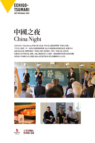 越后妻有大地艺术节-中国之夜 时间:2018.7.27 地点:奴奈川小学 参与人员:中日文化界、艺术界、在日华人团体代表、新闻媒体等百余人出席活动 |