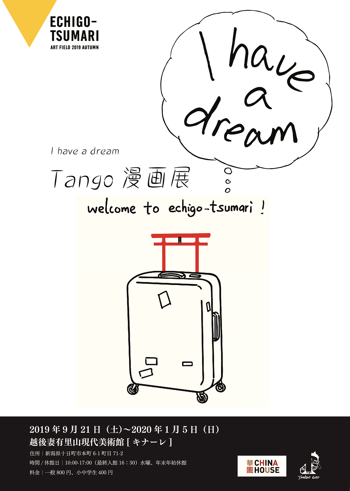 I have a dream – Tango漫画展 时间:2019年9月21日-2020年1月5日 地点:越后妻有里山现代美术馆MonET 参展艺术家:TANGO