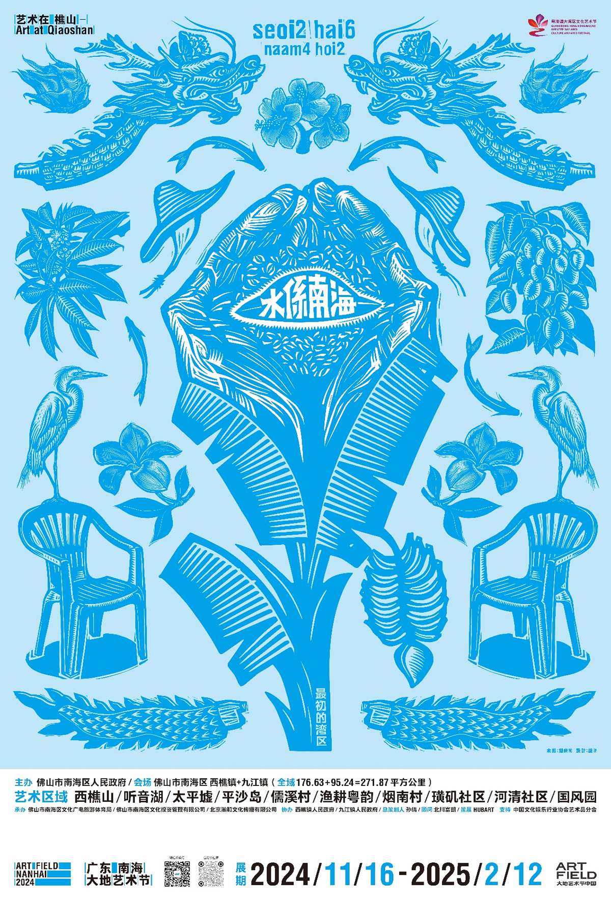 “艺术在樵山—广东南海大地艺术节2024”以“水係南海”为本届主题,在南海区七个镇街中的西樵镇和九江镇,271.87 平方公里范围内展开,共设 10 个气质各异的艺术区域。全部艺术项目共计 95 个(包含首届保留和本届新增项目),由来自30个国家和地区的 165 组参展艺术家,共同呈现一个高品质、在地性、国际化、多元跨界的艺术盛宴。正展期已于2024年11月16日至2025年2月12日期间圆满举办。